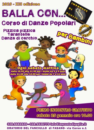 Il Sabato dalle 10.00alle 12.00 La danza rende liberi e felici e quando a ballare sono i bimbi c’è ancora più gioia. Ripartono gli incontri settimanali con le danze popolari per…