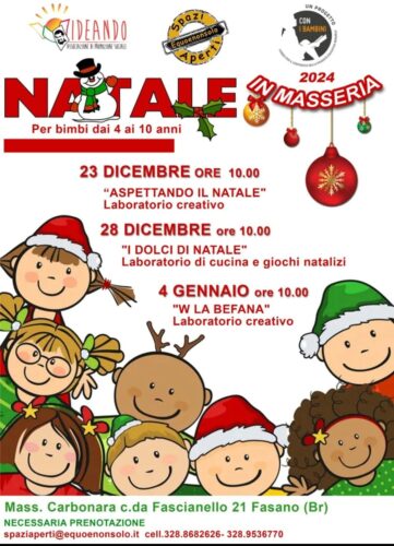 Arrivano le vacanze e arriviamo noi! 3 incontri per ritrovarci e divertirci. Vi aspettiamo a Masseria Carbonara. Chi viene? Necessaria la prenotazione, i laboratori per bambini dai 4 ai 10…